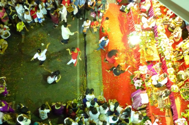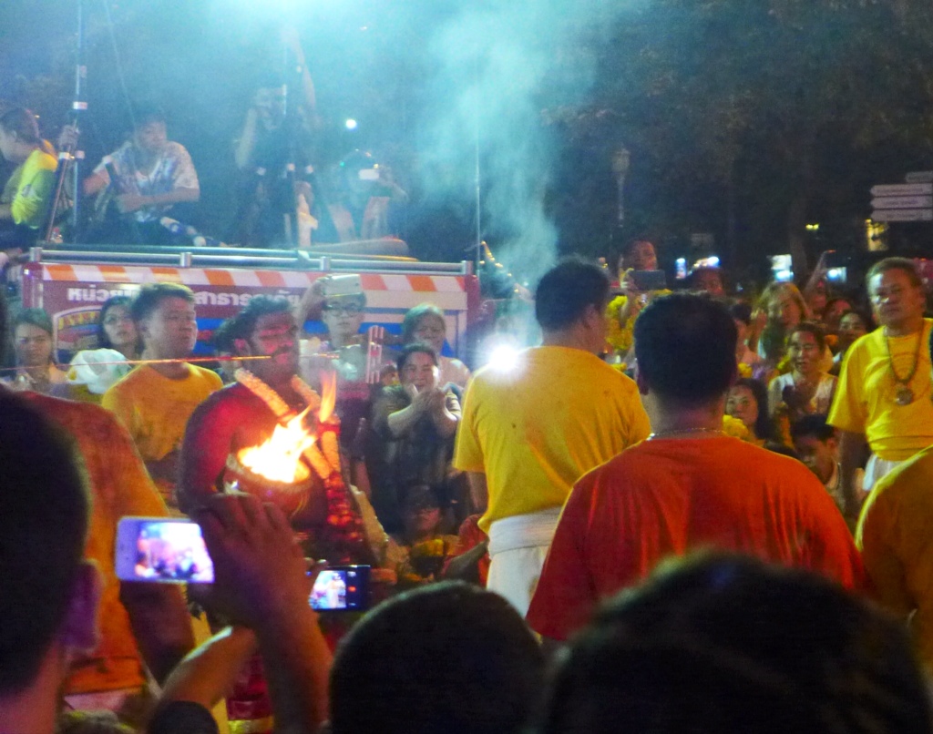 I had worked my way right up to the edge of the route and was preparing to dart across road when a guy with a 3 ft bamboo spear in his mouth and a bowl of fire came around the corner.
