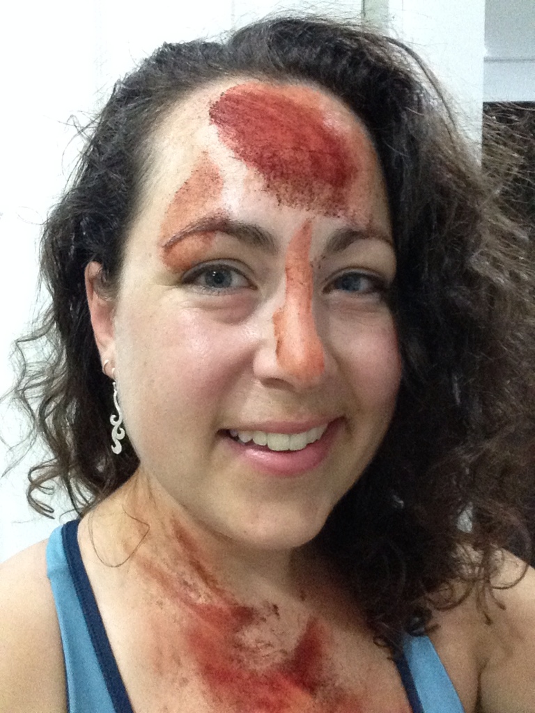 I made my way across the street and through the crowd of red-powdered revelers to Bryan’s. I didn’t realize I looked so terrifying until the security guard looked shocked to see me walk into the lobby. I had seen that expression once before, that one time at Uni when I face-planted off my bike. My roommate took me to the medical center with an open bag of frozen peas on my face and I left a trail of tiny green orbs in the waiting room. Ahh, memories!